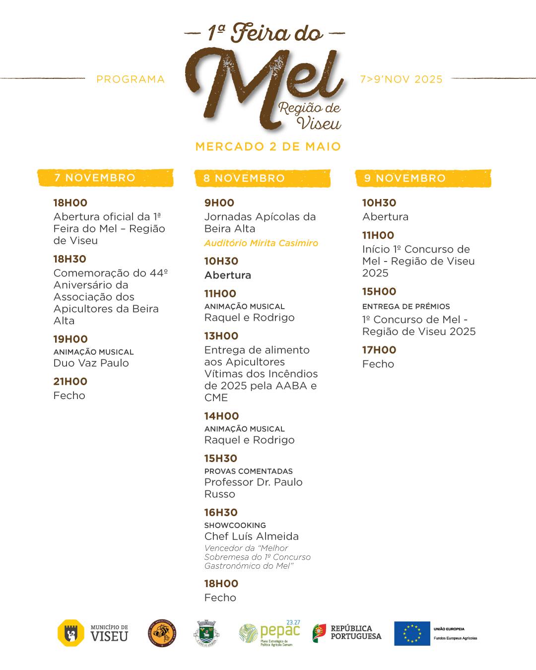 Vai ter lugar no Mercado 2 de maio, em Viseu, a 1ª Feira do Mel – Região de Viseu, nos dias 7, 8 e 9 de Novembro, onde decorre em simultâneo: as Jornadas Apícolas da Beira Alta – a decorrer no dia 8 de Novembro, no Auditório