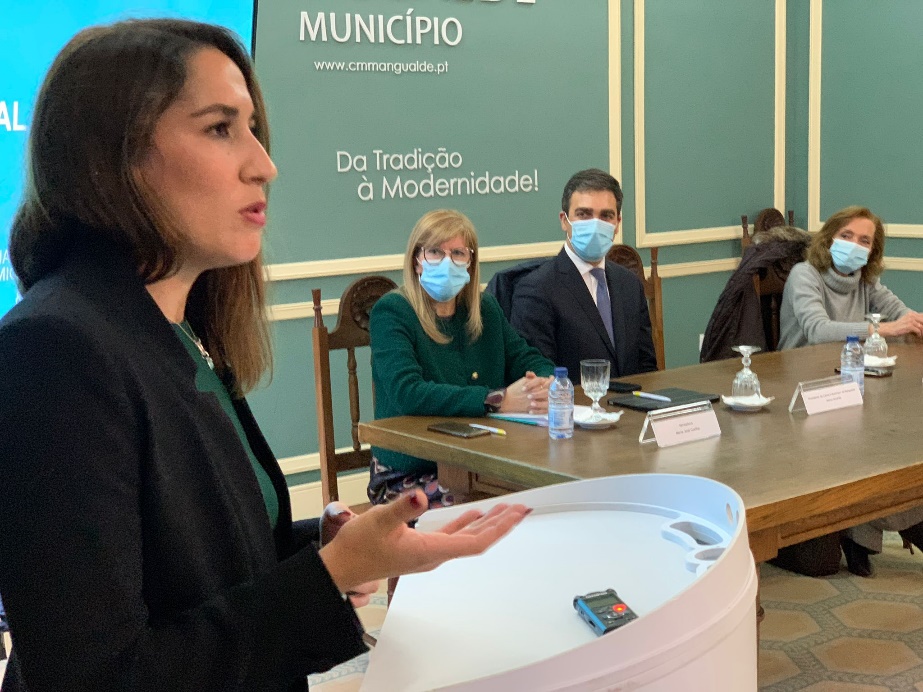 Na tarde desta terça-feira, aconteceu a cerimónia de assinatura/homologação do Acordo de Colaboração entre o Município de Mangualde e o IHRU – Instituto da Habitação e Reabilitação Urbana ,no Salão Nobre da Câmara Municipal de Mangualde . Estiveram presentes a Secretária de Estado da Habitação, Marina Gonçalves, o Presidente da Câmara Municipal de Mangualde, Marco Almeida, a Presidente do Conselho Diretivo do IHRU, Isabel Dias e a vereadora da Ação Social, Maria José Coelho, a quem coube a apresentação da estratégia local de habitação.