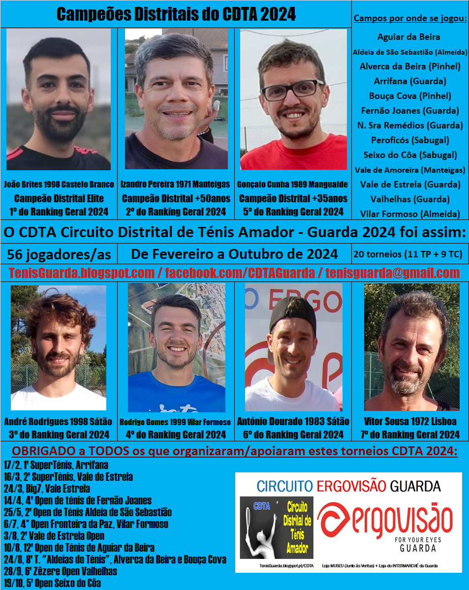 Está concluída, a oitava época do Circuito Distrital de Ténis Amador (CDTA Ergovisão Guarda) após…