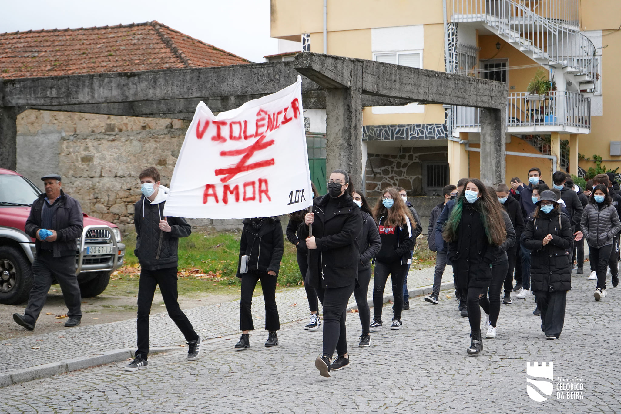 OAgrupamento de Escolas de Celorico da Beira, assinalou o Dia Internacional pela Eliminação da Violência Contra a Mulher, numa atividade que partiu da iniciativa das docentes Paula Fonseca (Coordenadora do PES), Elsa Francês (docente de Geografia), Olga Marques (docente de Psicologia) e da Biblioteca Escolar.Todos os alunos do ensino secundário e profissional, participaram numa marcha pela vila de Celorico da Beira, que partiu da Escola sede do Agrupamento, em direção à Câmara Municipal, tendo terminado com uma coreografia de dança, no Mercado Municipal, pelos alunos do Clube de Dança.