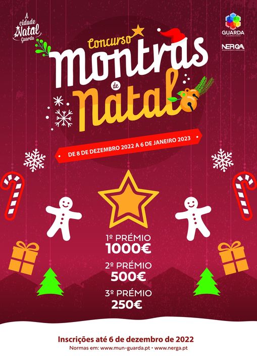 INSCRIÇÕES ABERTASArrancaram as inscrições para o Concurso “Montras de Natal 2022”. Este ano o tema para a decoração das montras será a Estrela de Natal e o cristal, como símbolo do clima que nos caracteriza. A votação decorrerá entre 8 de dezembro de 2022 e 6 de janeiro de 2023, exclusivamente online através da plataforma da Câmara da Guarda, no seu site. O Município da Guarda atribuirá 1000 euros à melhor montra e 500 e 250 euros respetivamente ao segundo e terceiro lugares. As lojas interessadas em participar deverão ler atentamente as normas do concurso e inscrever-se até 6 de dezembro através: https://montras.mun-guarda.pt. A iniciativa é uma organização do Município da Guarda, em parceria com o NERGA.