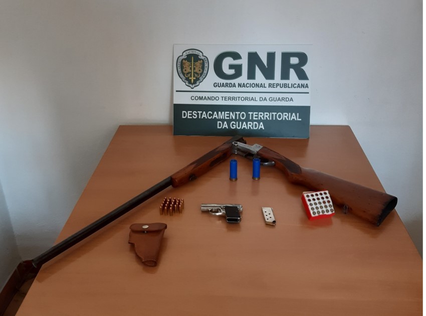 Na sequência de uma denúncia a relatar uma situação de agressões do suspeito sobre a sua mulher, de 70 anos, os militares da Guarda foram à residência do casal onde detetaram armas não registadas e para as quais não tinha licença.