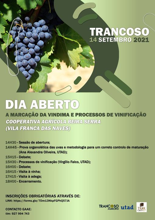 Vai ter lugar o Dia Aberto, com o tema ” Marcação da Vindima e Processos de Vinificação”, em Vila Franca das Naves, no dia 14 de setembro.PROGRAMA: