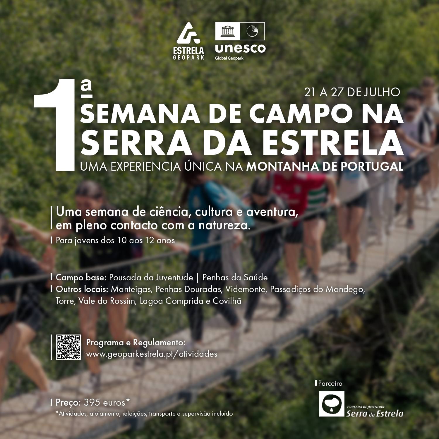 Quem participar neste campo de férias terá a oportunidade de realizar percursos pedestres em trilhos naturais; percorrer os Passadiços do Mondego; banhar-se nas praias fluviais da Estrela ou numa piscina a 1500 metros de altitude; aprender como se faz o pão mais tradicional da região – o pão de centeio, visitar uma queijaria, entre muitas outras atividades, pois cada dia traz consigo uma nova aventura.