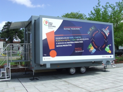 Composta por plataformas multimédia e conteúdos interativos sobre economia circular, a exposição itinerante da “Ideia com Futuro – Reciclar no Planalto Beirão” .