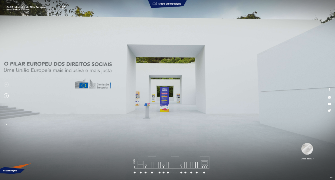 Fruto de uma iniciativa da Representação da Comissão Europeia em Portugal, esta exibição visa dar a conhecer, de forma imersiva, os 20 princípios do Pilar Europeu dos Direitos Sociais, que constituem o quadro de orientação para a construção de uma Europa social forte, justa, inclusiva e plena de oportunidades. Estes princípios estão estruturados em torno de três grandes prioridades: igualdade de oportunidades e acesso ao mercado de trabalho; condições de trabalho justas; proteção e inclusão social. A entrada é livre, sendo fundamental o respeito das regras de saúde pública em vigor.