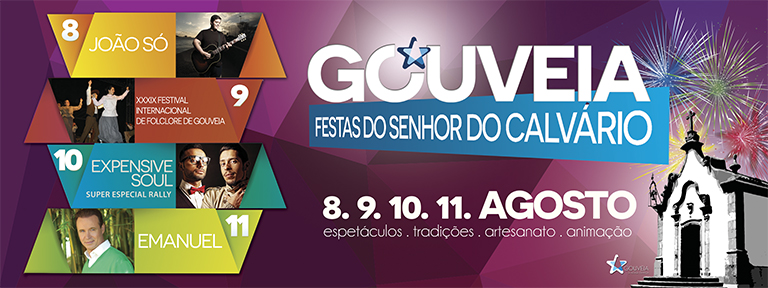Festas do Senhor do Calvário decorrem em Gouveia entre 08 e 11 de agosto. Ponto de encontro anual para a população do concelho, atraindo milhares de visitantes a Gouveia, o palco principal do evento apresenta como artistas convidados João Só, os Expensive Soul e Emanuel, na noite de sábado decorre o 39º Festival Internacional de Folclore de Gouveia.