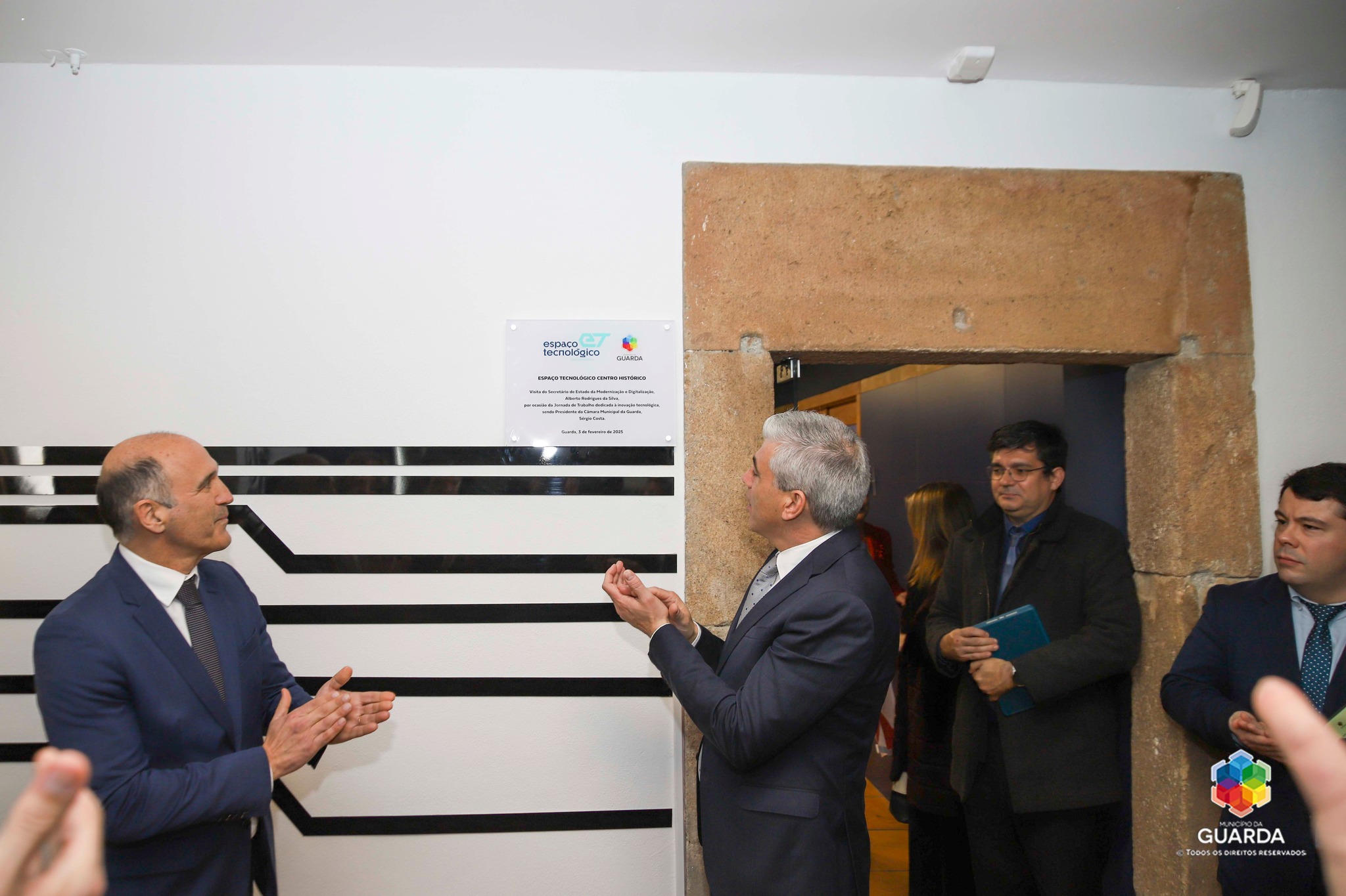 A Câmara Municipal da Guarda promoveu nesta segunda-feira, uma jornada de trabalho dedicada à inovação tecnológica. Na cidade mais alta existem atualmente 10 empresas na área tecnológica com 200 colaboradores. O presidente da Câmara da Guarda, Sérgio Costa, revelou que a perspetiva destas empresas é chegar aos 300 postos de trabalho até ao final do ano, o que demonstra o potencial da cidade. A jornada de trabalho, que contou com a presença do secretário de Estado da Modernização e Digitalização, Alberto Rodrigues da Silva, começou com uma visita ao Espaço Tecnológico, localizado no Centro Histórico da Guarda, onde se encontram instaladas três empresas de base tecnológica – NTT Data, TRH e Air Liquide – e onde foi descerrada uma placa alusiva à iniciativa. As empresas instaladas neste espaço desenvolvem a sua atividade na área tecnológica e estão empenhadas em atrair talento. O autarca considerou que o Espaço Tecnológico é um verdadeiro caso de sucesso, assinalando que o Município investiu 400 mil euros para criar condições à fixação das empresas transformando o projeto num “catalisador de inovação”. O secretário de Estado destacou a dinâmica do Município e manifestou o seu apoio à estratégia preconizada para atrair empresas.