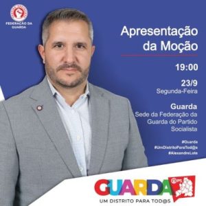 Vai ter lugar, na Guarda, apresentação da moção “Guarda, Um Distrito Para Tod@s”, no dia 23 de setembro, segunda-feira, às 19h, na sede da Federação da Guarda do PS, por Aleandre Lote, candidato a novo mandato à frente dos destinos da Federação da Guarda do PS.