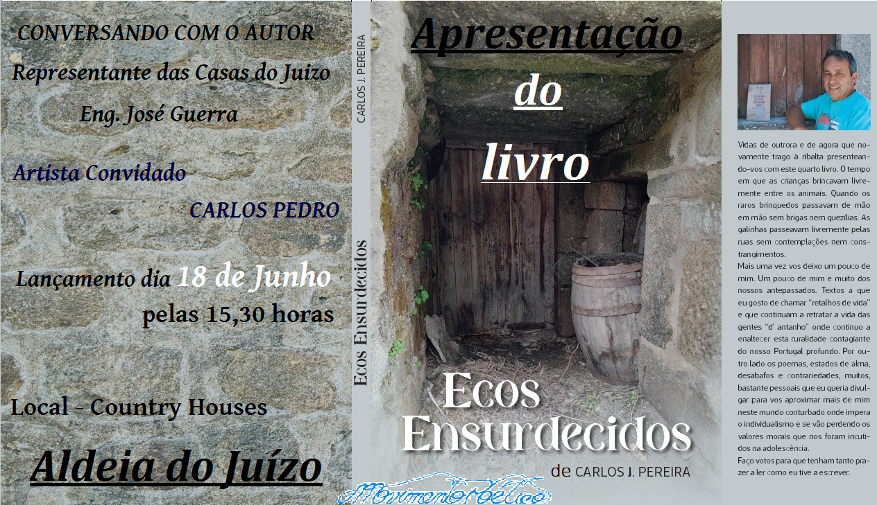 Vai ter lugar a apresentação do livro “Ecos Ensurdecidos”, de Carlos Pereira, no domingo, dia 18 de junho, nas “Casas do Juízo” na aldeia do Juízo – Pinhel, pelas 15h30m.