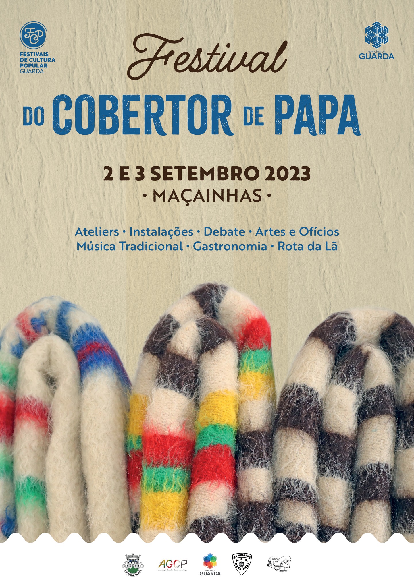 No próximo fim de semana, 2 e 3 de setembro, a freguesia de Maçainhas recebe o Festival do Cobertor de Papa. O cobertor de papa, uma manta tradicional da Serra da Estrela, de fabrico manual a partir da lã churra de ovelha Mondegueira, identifica esta região é a estrela deste festival. Ateliês ligados à lã e ao fabrico do cobertor, debates, animação musical são algumas das atividades que irão decorrer durante o fim de semana em Maçainhas. O certame conta ainda com exposição e venda de produtos, com a presentação de um filme e com um debate sob o tema “Cobertor de Papa um ecossistema em risco de extinção”, no domingo às 15h00. A iniciativa integra o ciclo de Festivais de Cultura Popular do Município da Guarda. Fica aqui o programa completo dos dois dias do Festival.