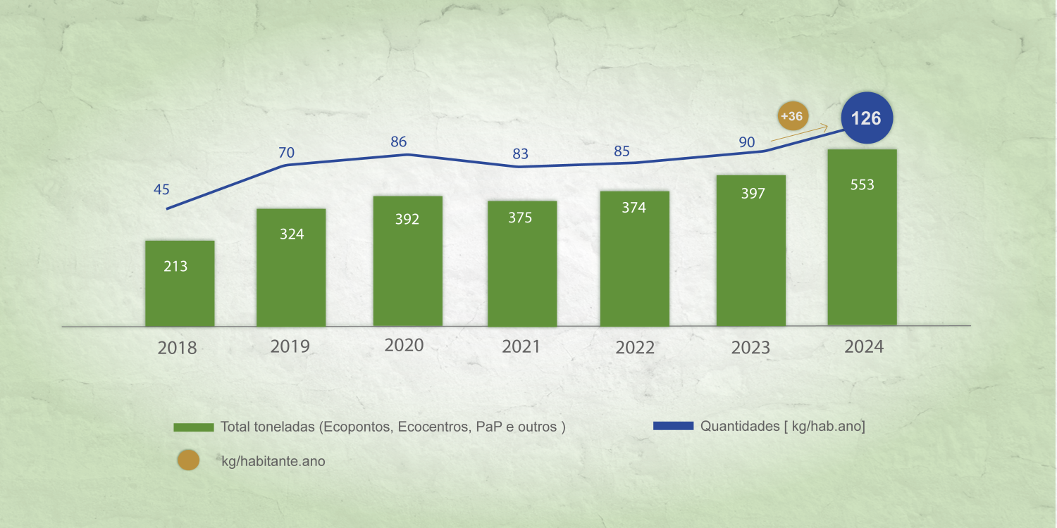 Cada habitante do concelho fornense reciclou 126 kg por ano, um aumento de 36 kg habitante/ano, face a 2023