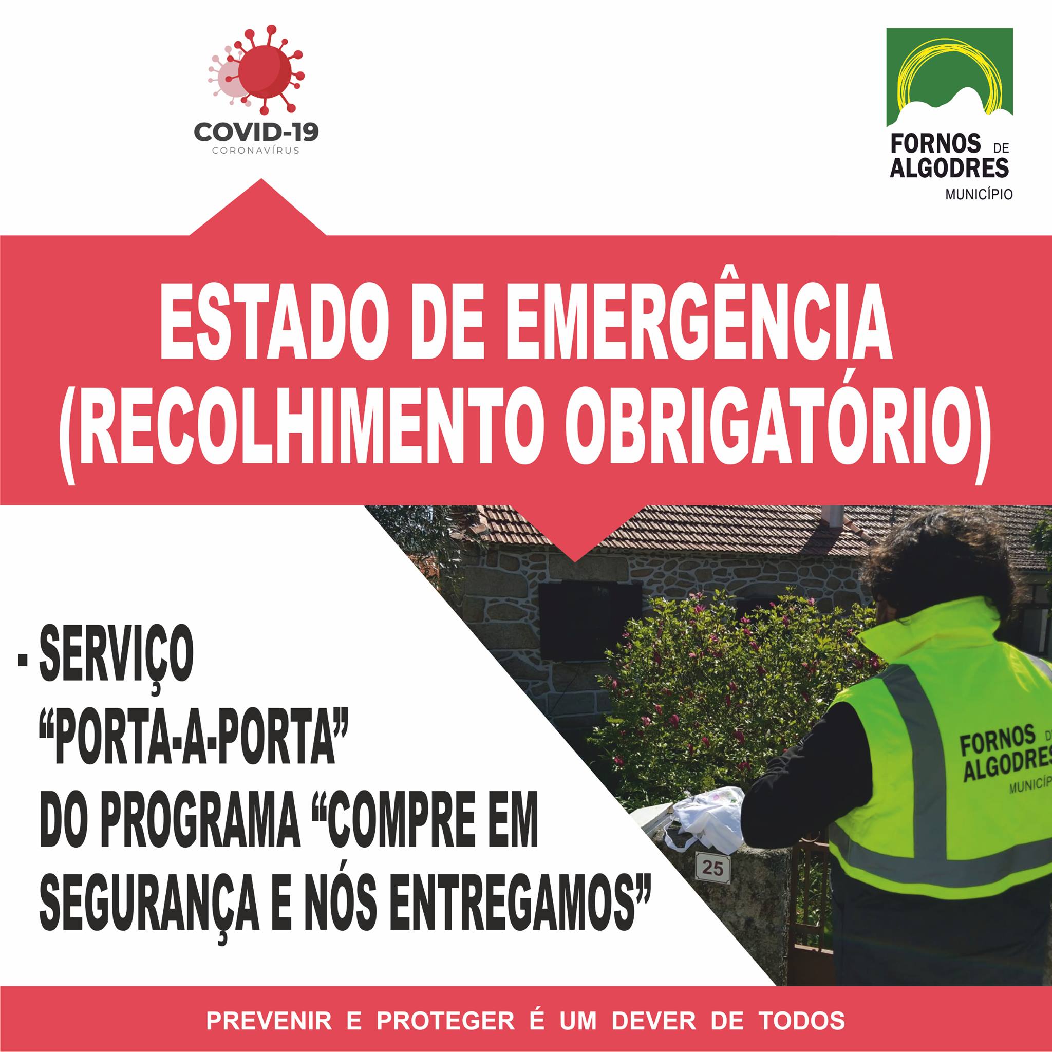 - Está em funcionamento o serviço “porta-a-porta” do programa “Compre Em Segurança e Nós Entregamos”, para bens alimentares e medicamentos.