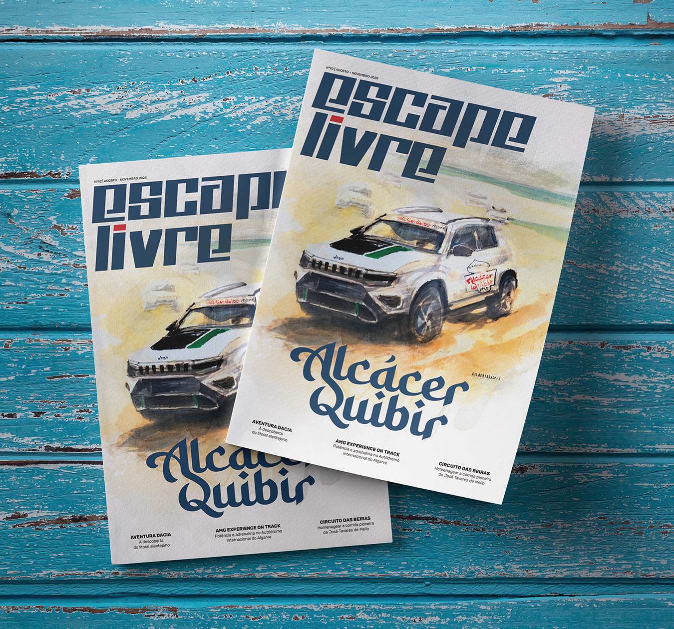 Nesta edição da Escape Livre Magazine contamos-lhe tudo sobre a Expedição Bridgestone / First Stop Alcácer Quibir powered by Jeep que percorreu as pisadas de D. Sebastião até à fatídica batalha em Alcácer Quibir, ilustrada na capa desta revista pelo traço inconfundível de Gilberto Gaspar, retratando o momento em que a caravana enfrentou as areias da praia entre Larache e Arzila, onde estiveram ancorados os navios portugueses.