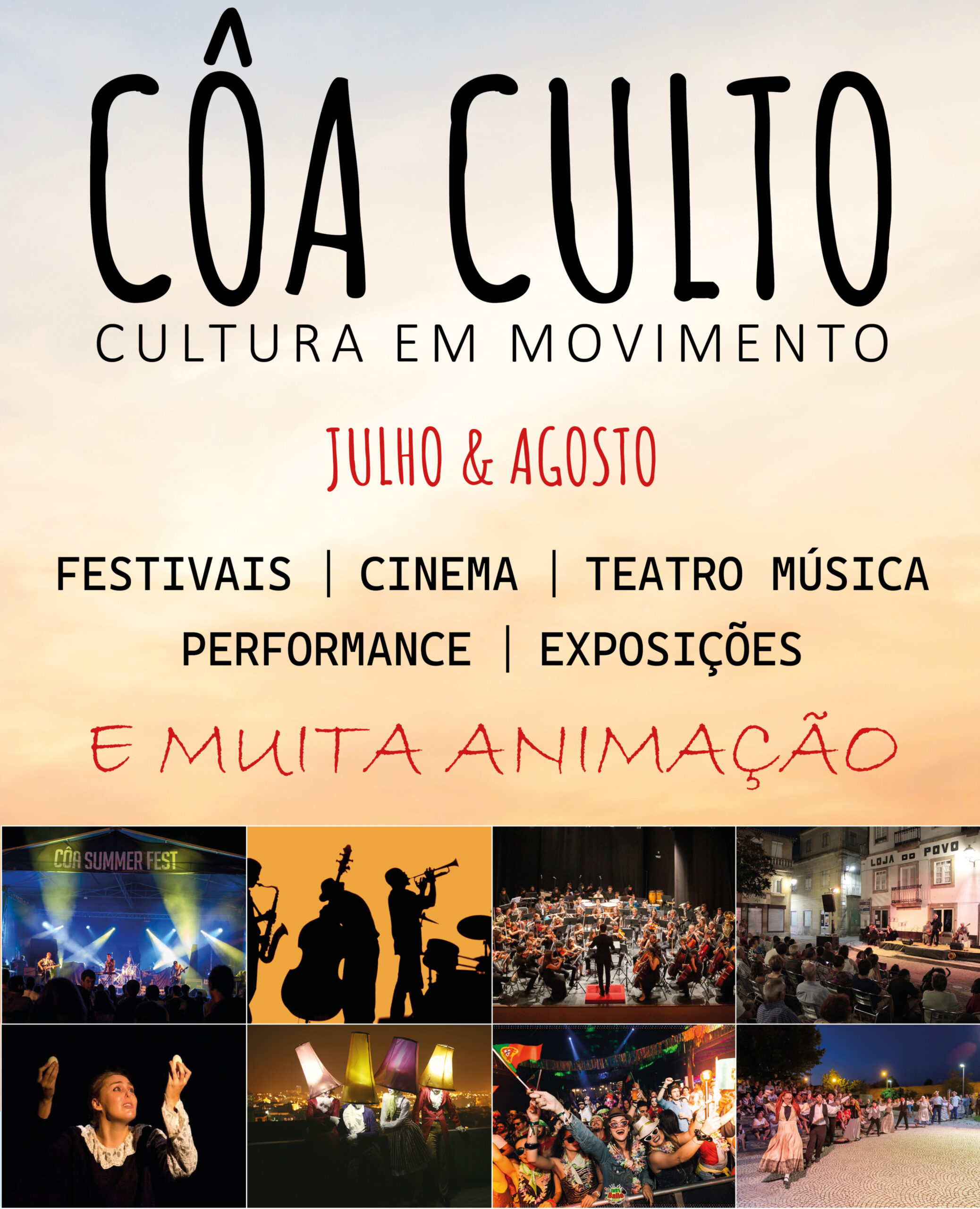 O projeto CôaCulto – Cultura em Movimento, vai invadir o concelho de Foz Côa durante os meses de julho e agosto. Trata-se de um projeto cultural, cujo objetivo é dinamizar os diferentes espaços públicos de todas as freguesias do concelho, dar a conhecer os diferentes locais e permitir o acesso de todos a um conjunto de iniciativas e espetáculos, que vão desde Artes performativas, cinema, música, teatro, exposições, bailes e muita animação.