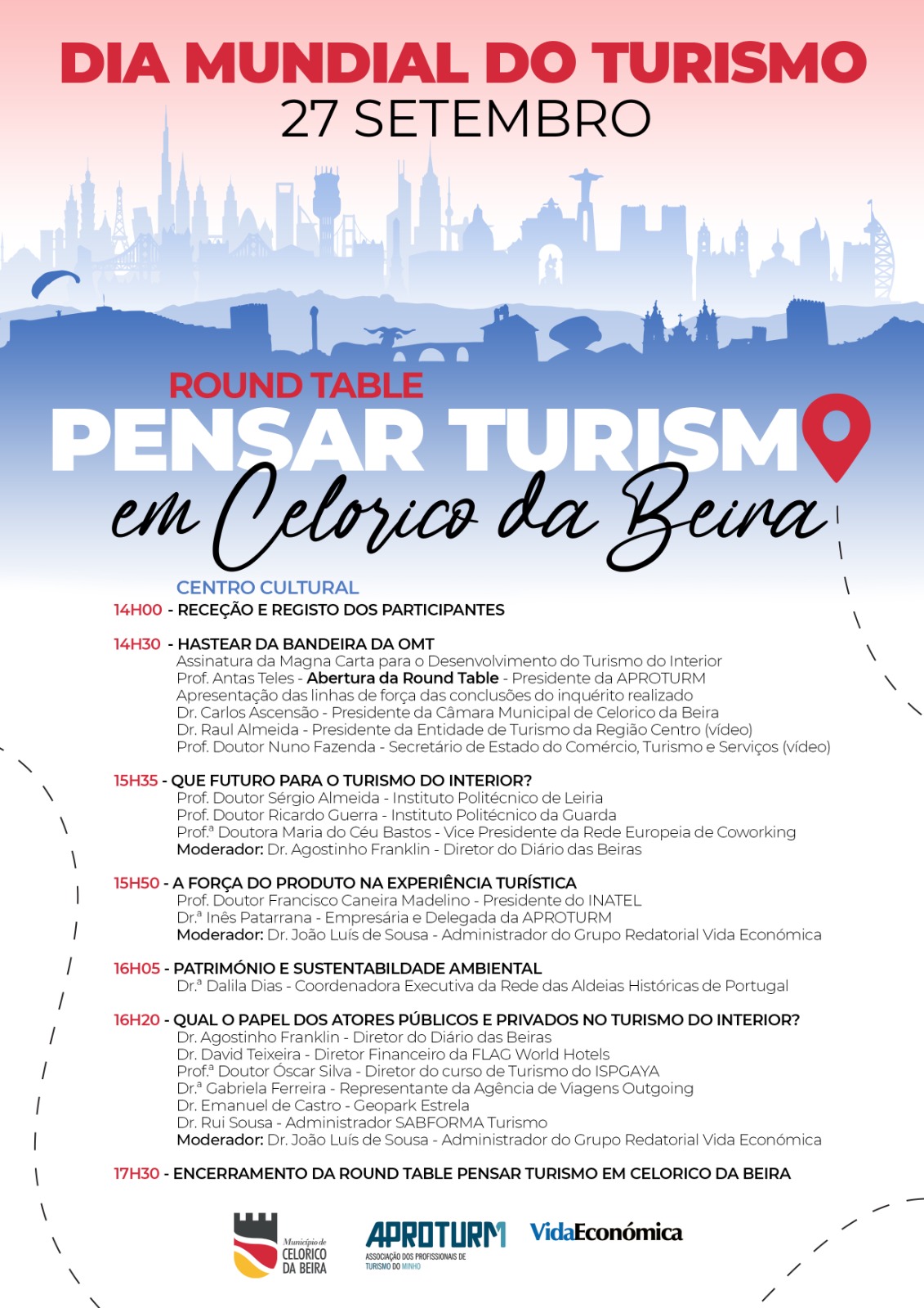 Para assinalar o Dia Mundial do Turismo, o município de Celorico da Beira leva a feito no próximo dia 27 de setembro, pelas 14H00, no Centro Cultural de Celorico da Beira, a Round Table – PENSAR TURISMO EM CELORICO DA BEIRA.