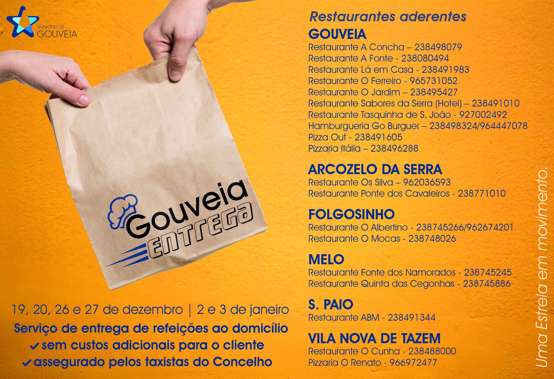 Gouveia Entrega – serviço nos fins de semana de 19, 20, 26 e 27 de dezembro e 2 e 3 de janeiro