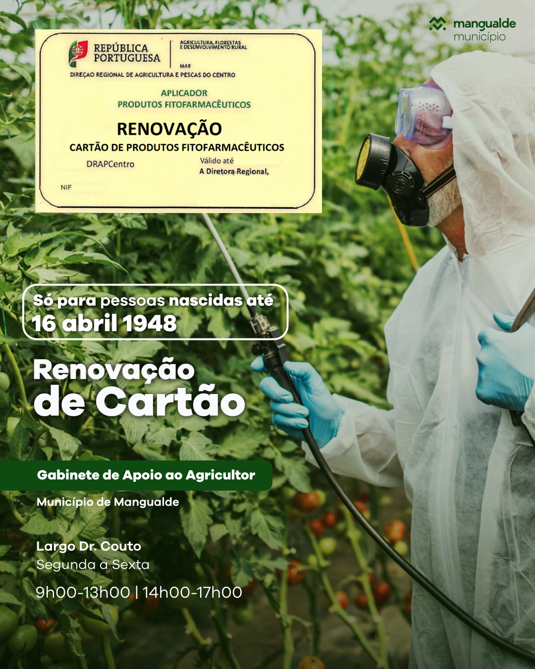 Mangualde facilita renovação do Cartão de Aplicador de Fitofarmacêuticos