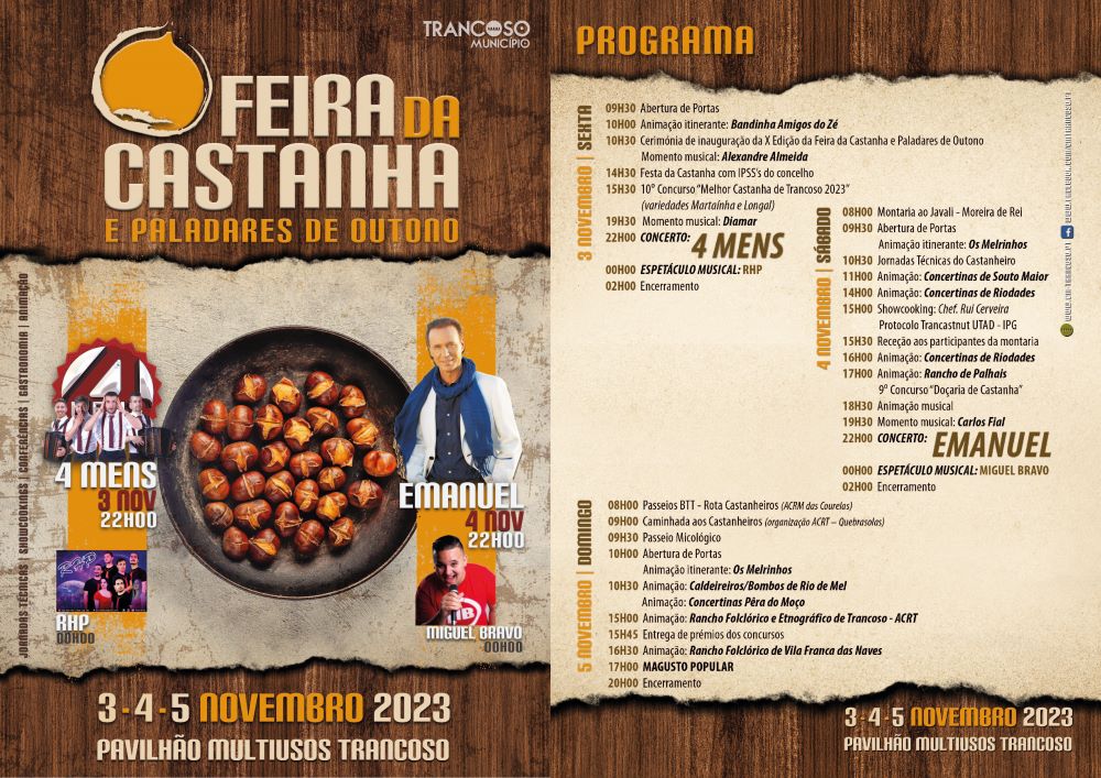 Vai ter lugar mais uma edição da Feira da Castanha e Paladares de Outono no Pavilhão Multiusos de Trancoso, no fim de semana – 3 a 5 de novembro.