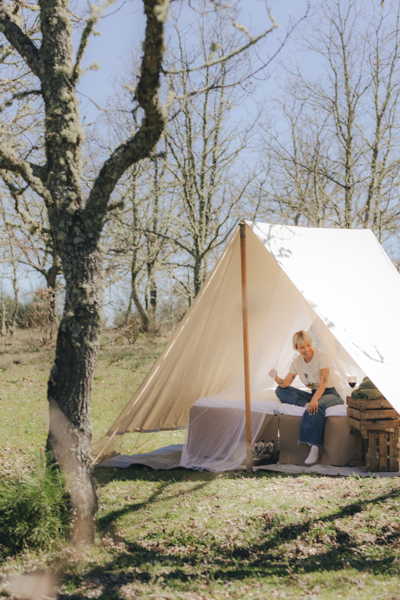 soluçãopara tornar isso possível. Consiste num serviço de acampamento de luxo, providenciado dentro da área rewilding do Paul de Toirões, entre as localidades de Malhada Sorda e Nave-de-Haver, no concelho de Almeida, no Grande Vale do Côa.