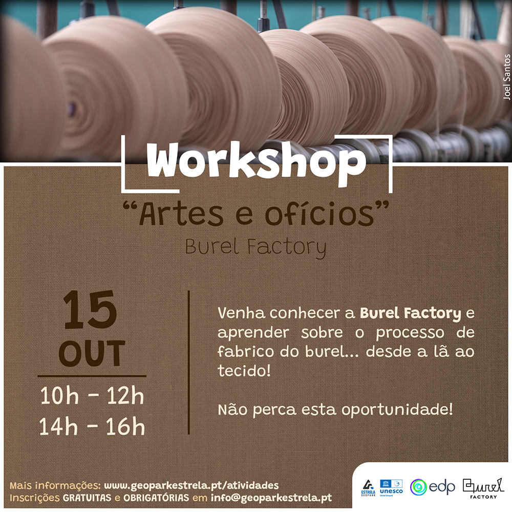 No próximo dia 15 de outubro, o Estrela Geopark Mundial da UNESCO em parceria com a Burel Factory, dinamiza o Workshop “Artes e Ofícios”. Este tem como objetivo dar a conhecer todo o processo de fabrico do burel … desde a lã ao tecido!